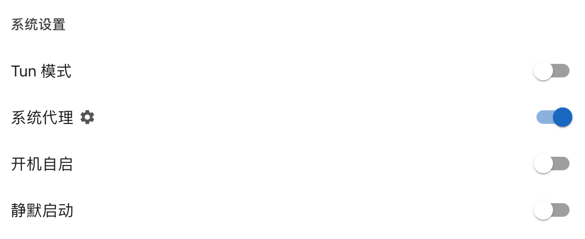 在 Clash Verge 左侧选择「设置」,然后打开「系统代理」的开关: