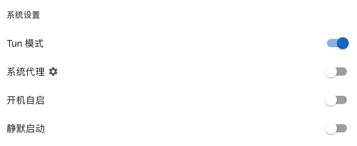 在这种情况下,可以在 Clash Verge 中打开「Tun 模式」的开关即可:
